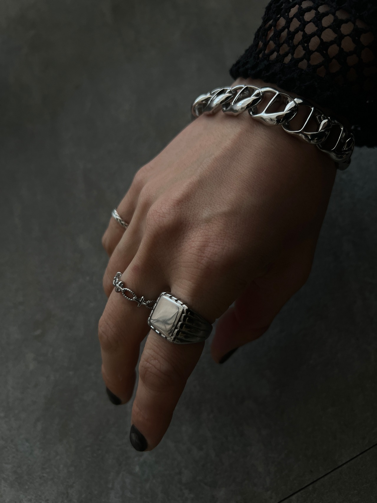 モードなスタイルに重厚感をプラス!