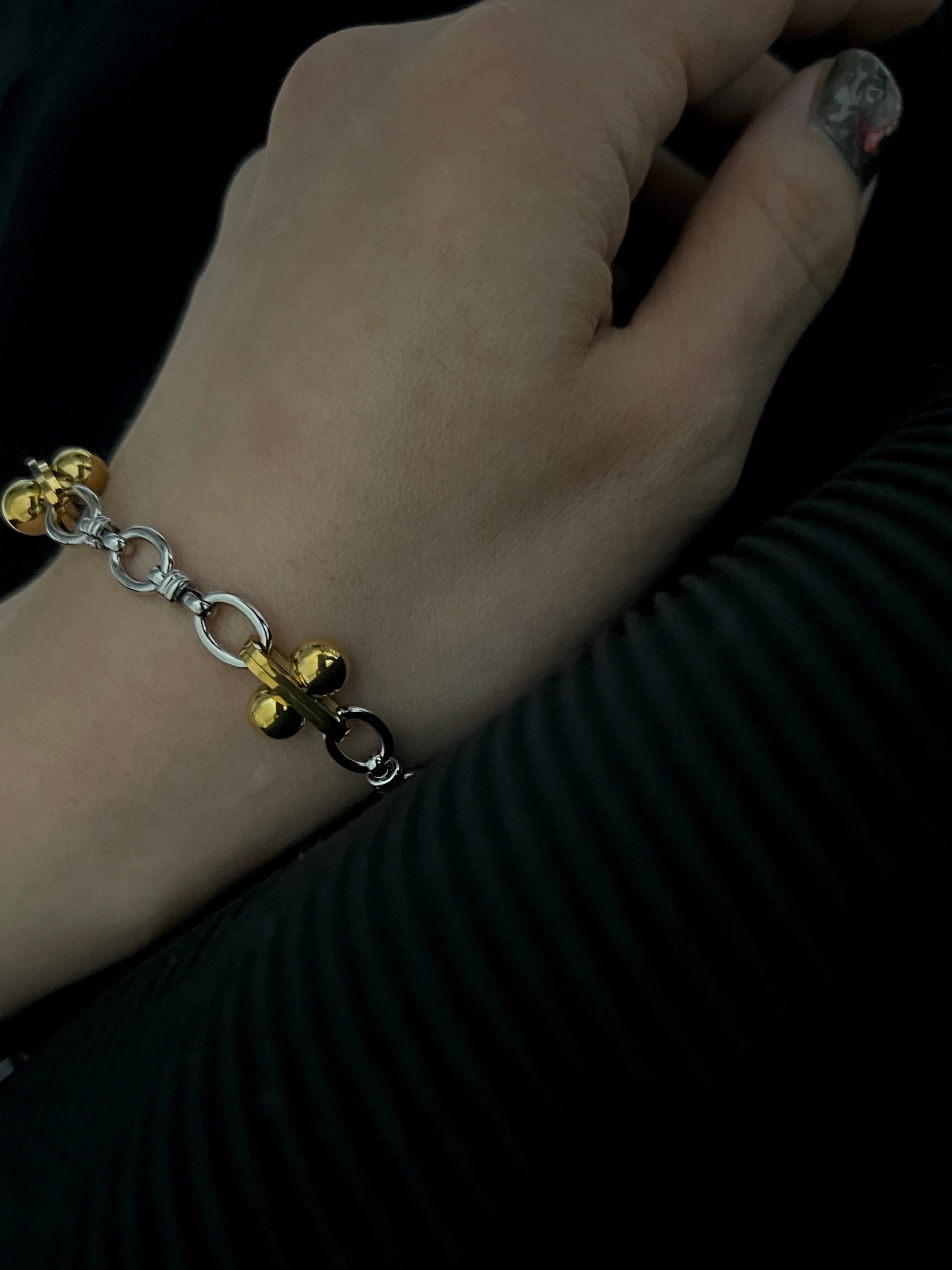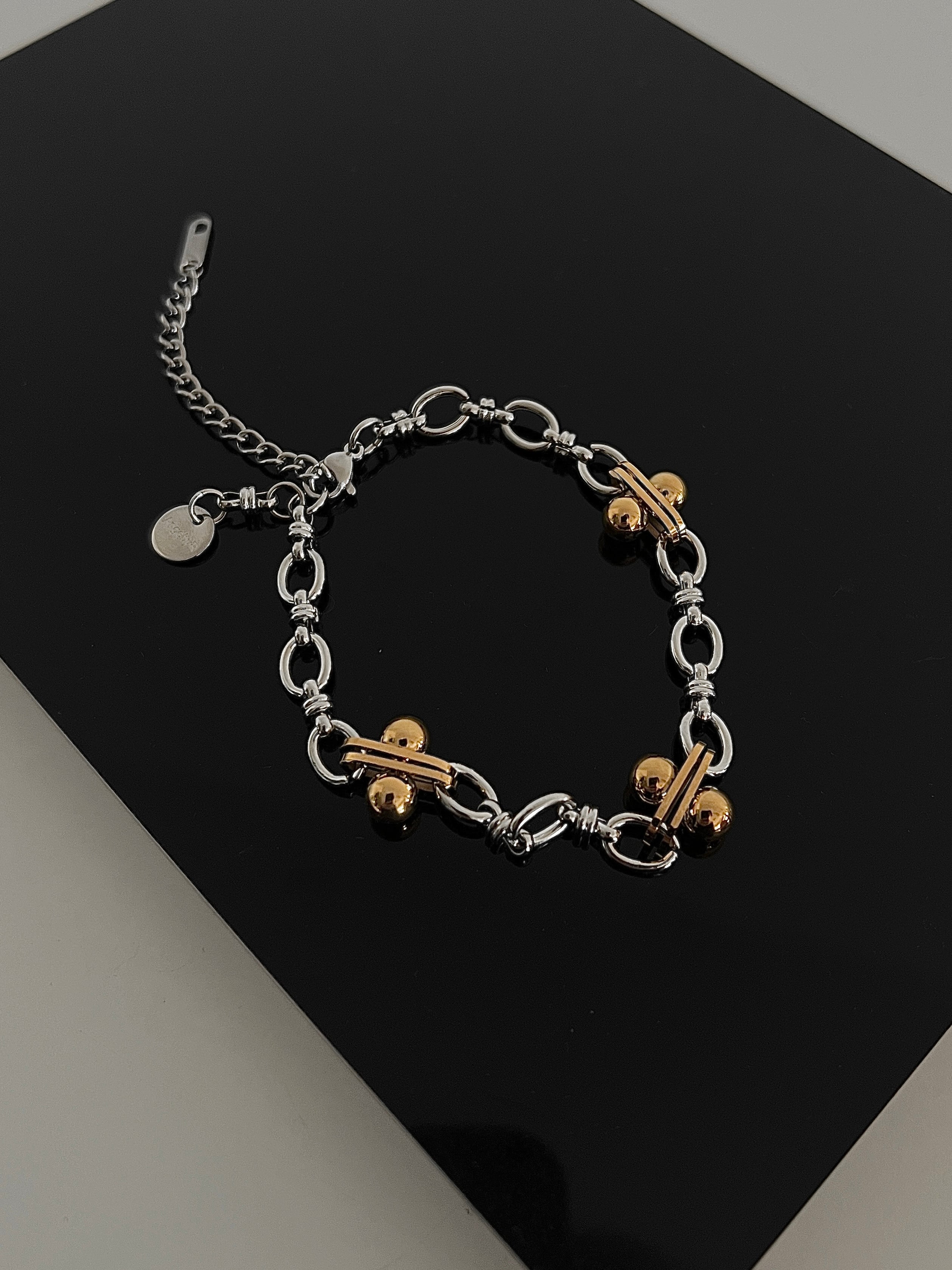 シンプルな装いにモードな奥行きをプラスしてくれるブレスレットです。