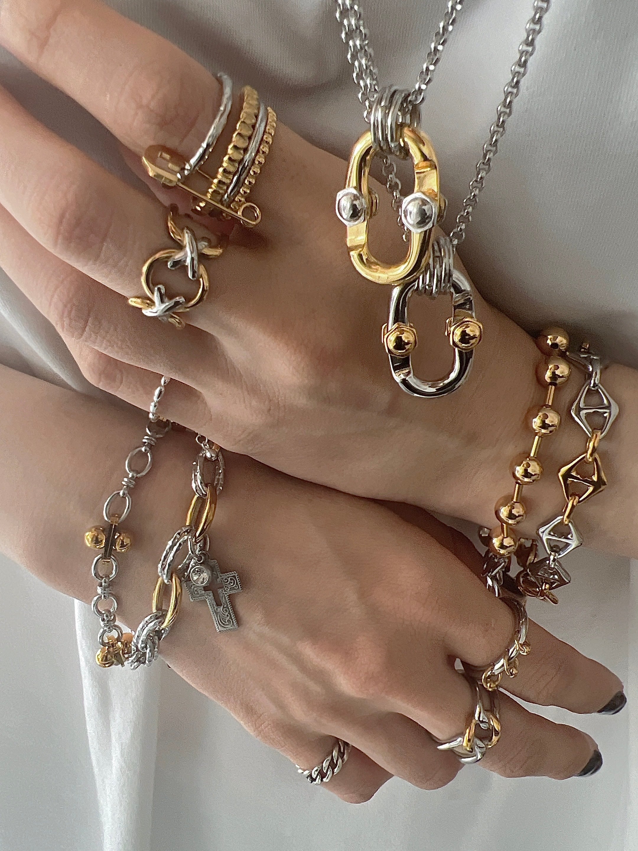 クールなシルバーデザインチェーンを融合