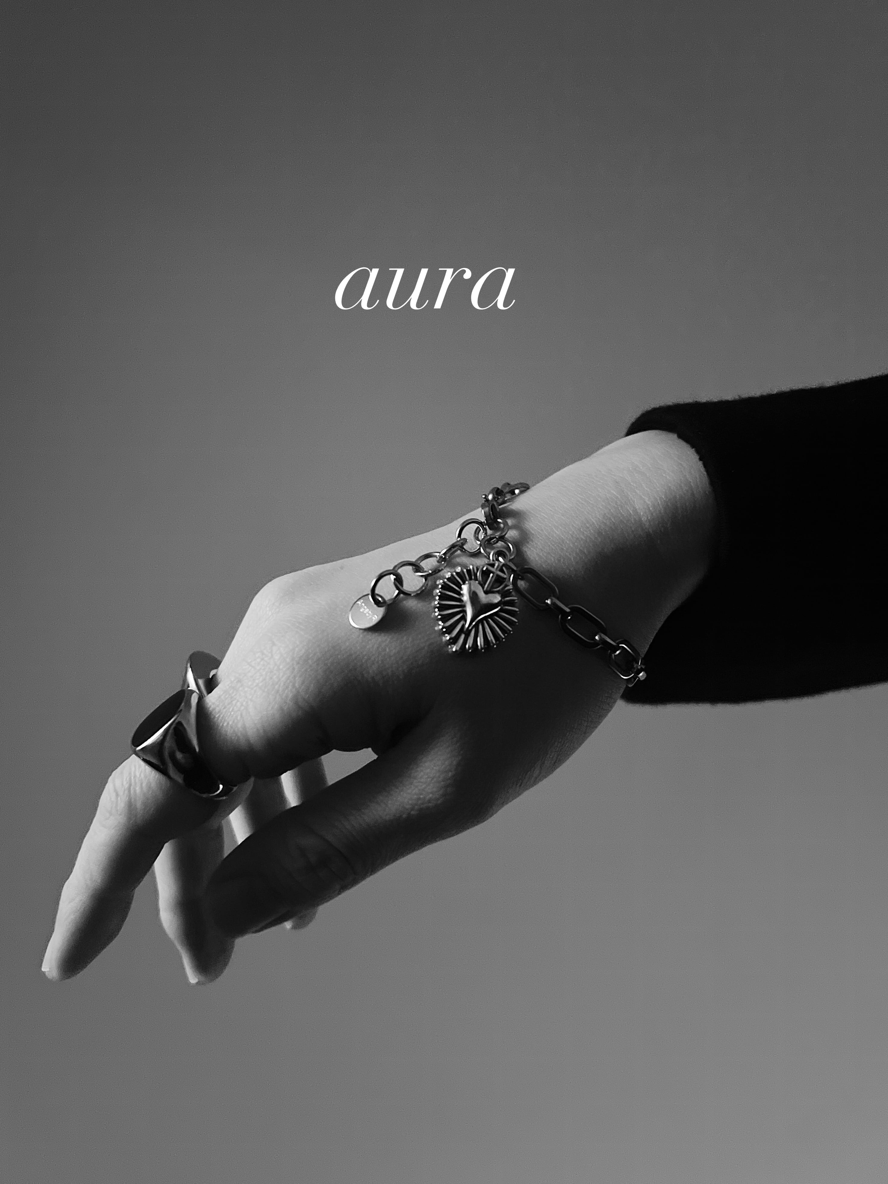 十字架とハートから放たれたエネルギー感じるペンダントから名付けた"AURA"はシンプルながらお手元にしっかり存在感放つデザインに仕上がっております。
